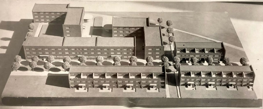 Der Pionier des Neuen Bauens Karl Schneider baute 1928/29 rund um den Bahrenfelder Marktplatz eine moderne Wohnbebauung aus 12 Reihenhäusern und drei rechtwinklig zueinander angeordneten Etagenhäusern mit 42 gutbürgerlichen Wohnungen. Außen erinnert der rote und gelbe Klinker, innen die farbig gestrichenen Treppenhäuser an das ursprüngliche, ausgeklügelte Farbkonzept. Drei flache, pavillonartige Ladengeschäfte mit einer elegant umlaufenden, gerundeten Schaufensterfront ergänzen die Anlage. In Sichtweite zu seinem eigenen Haus gelegen verdichtet sich hier Leben und Werk des Architekten.